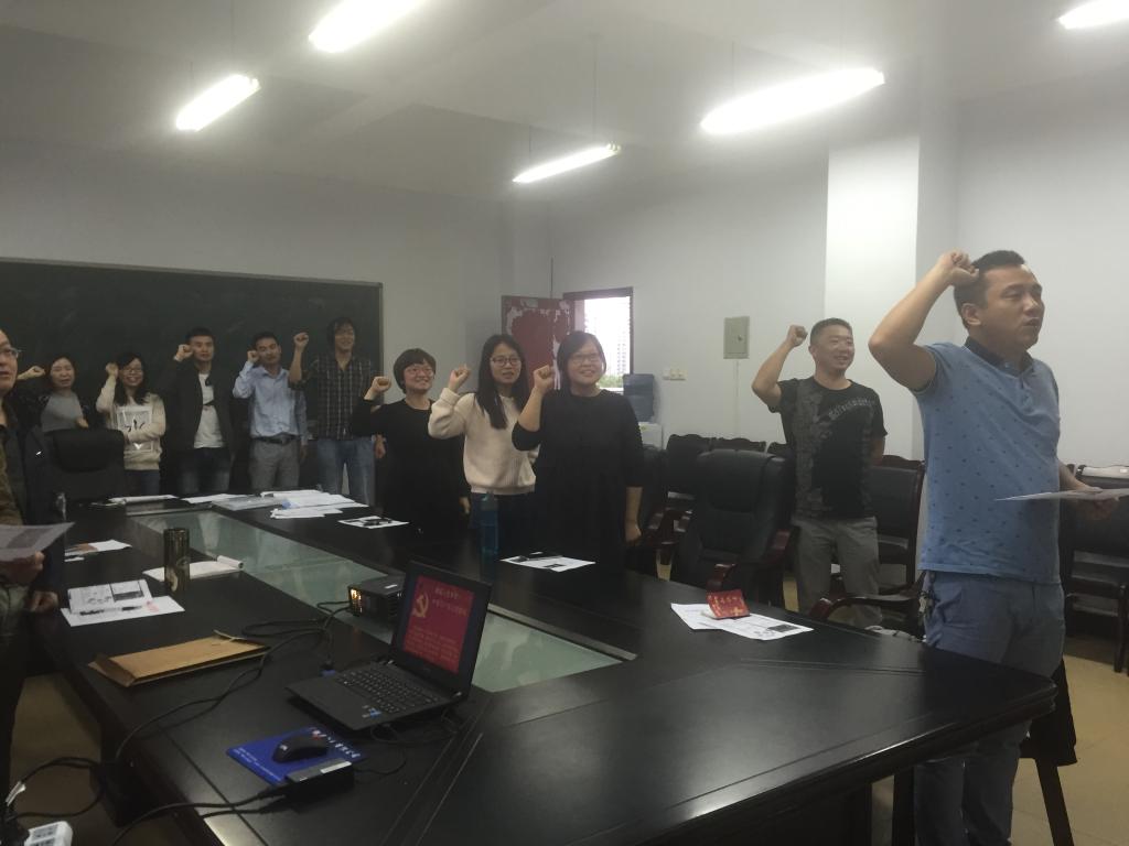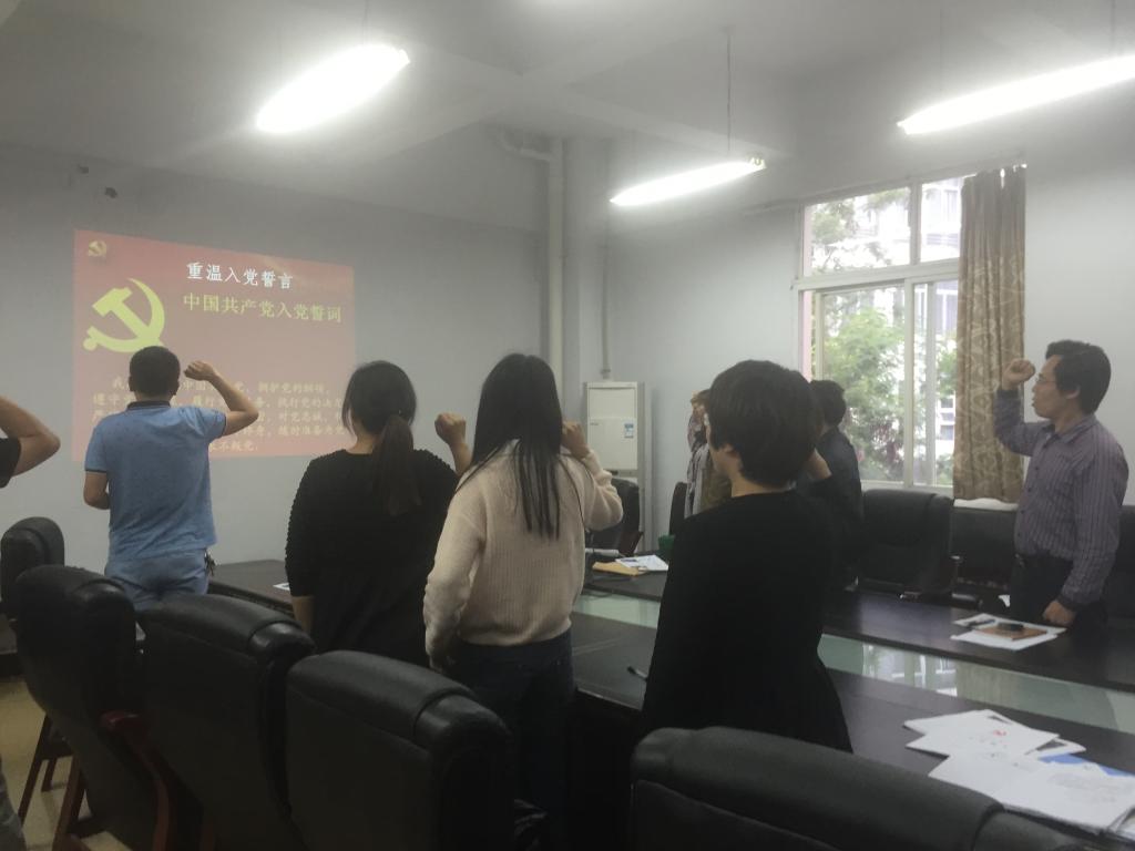 最后,为了让教工党员切身感受此次学习教育的重要性和严肃性,建环系团总支书记李渊同志带领全体党员重温入党誓词,感受党的教育。
