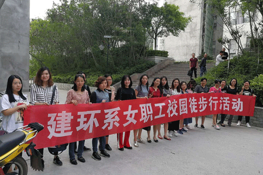 2018年4月19日,为倡导“健康生活,快乐工作”的生活方式,突显女性同胞在事业及家庭的双重角色,展现教师行业女性健康风采,搭建行业女性的沟通桥梁,建环系开展全系女同胞“校园徒步行走活动”,为平日里忙于工作的女教师们创造一个放松身心、亲近自然的机会。