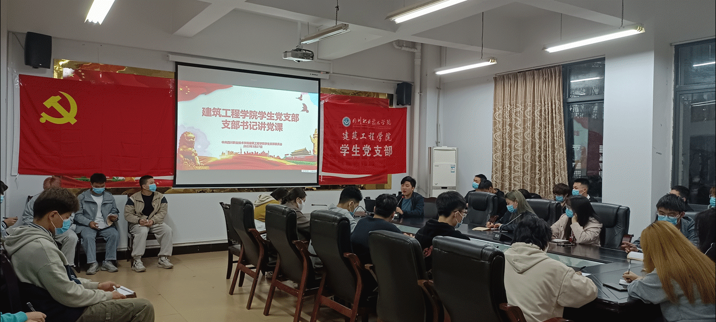 在喜迎党的二十大、献礼建团100周年之际,为落实从严治党要求,严格发展党员程序和加强党组织队伍建设,建筑工程学院党总支学生党支部于3月27日19:30在笃行楼201会议室以线上线下同时进行的方式开展了学生支部书记讲党课。
